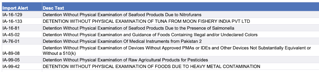 Recent modifications to FDA’s import alerts, as posted by the agency, are listed below. Click here to go to the FDA page with links for specific details about this week’s various alert modifications.