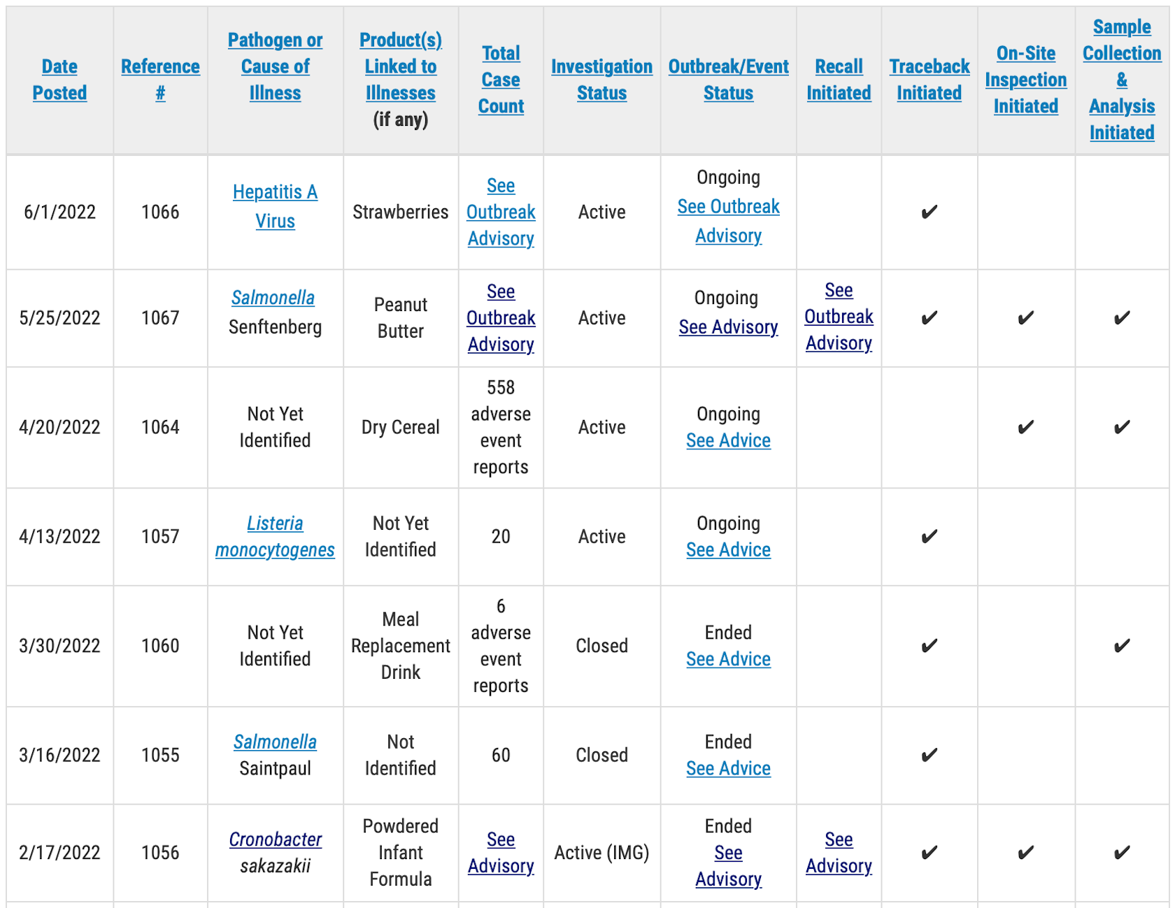 To view the FDA page with links to specific information on individual outbreaks, please click here.