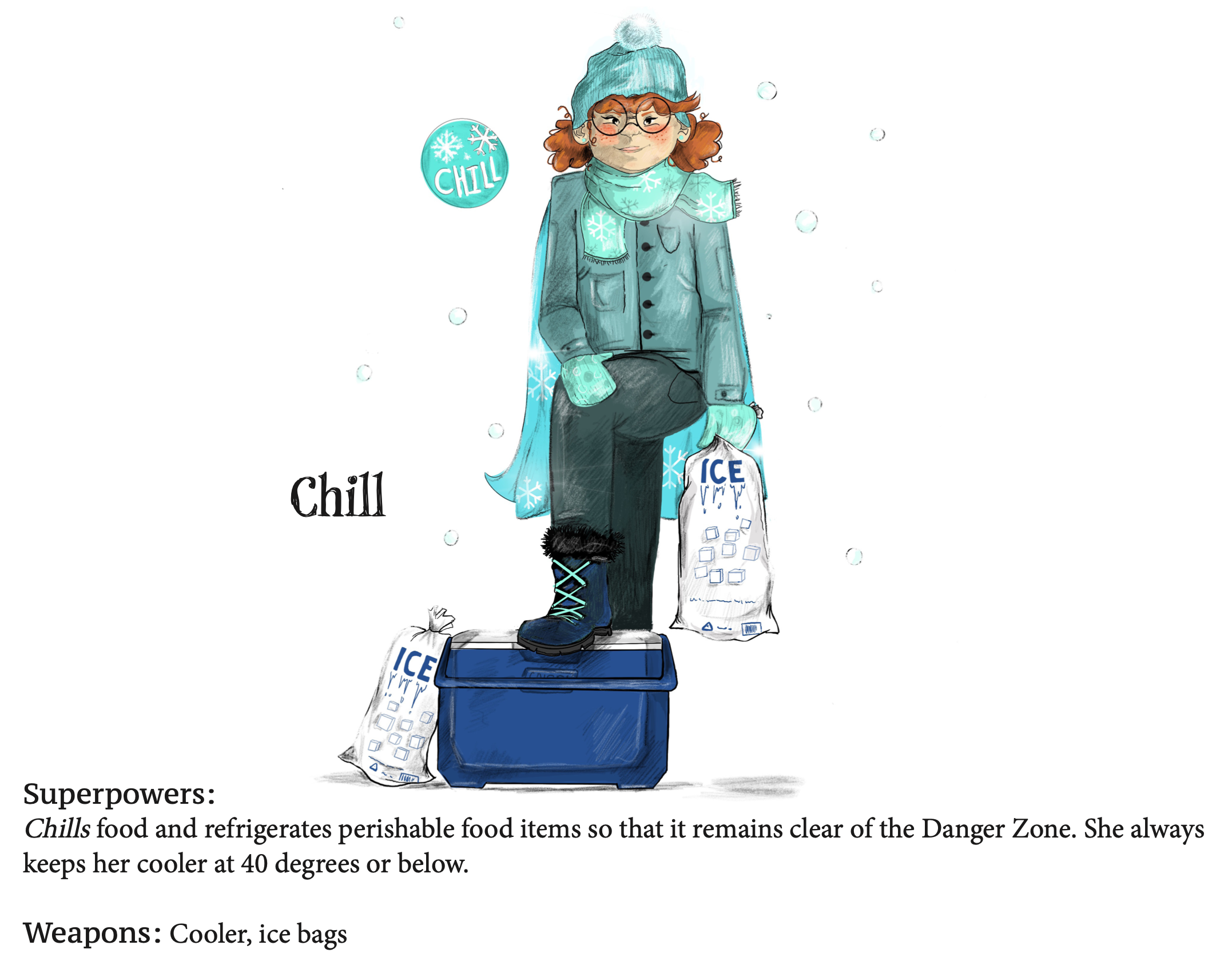 Over the next year we will be working on comic book, a cartoon video about the adventures of these superheroes, and a food safety jingle (thanks to my friend Vincent).