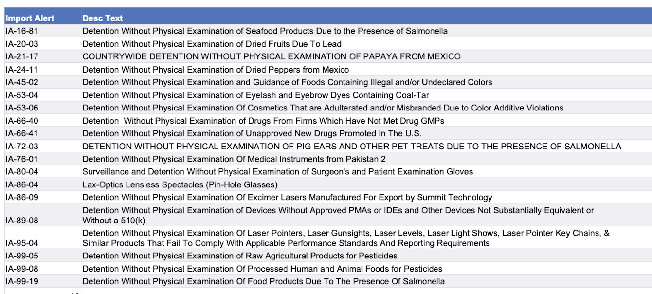 Recent modifications to FDA’s import alerts, as posted by the agency, are listed below. Click here to go to the FDA page with links to details on specific alerts.