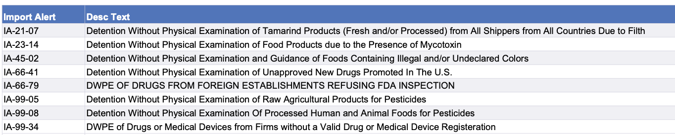 Recent modifications to FDA’s import alerts, as posted by the agency, are listed below. Click here to go to the FDA page with links to details on specific alerts.