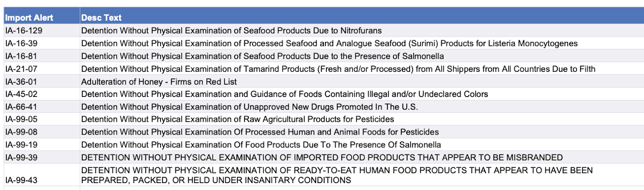 Recent modifications to FDA’s import alerts, as posted by the agency, are listed below.