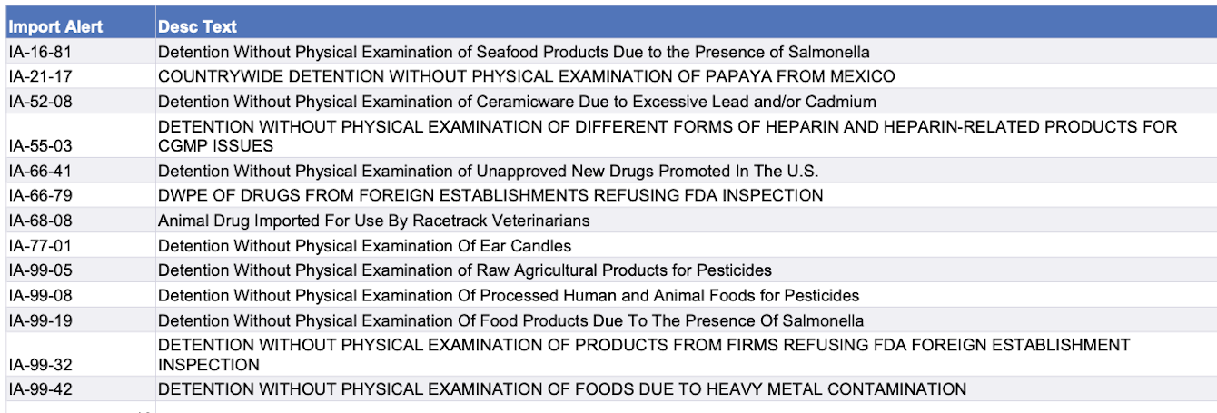 Recent modifications to FDA’s import alerts, as posted by the agency, are listed below.