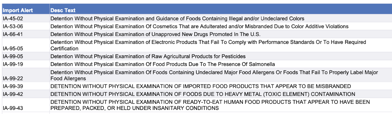 Recent modifications to FDA’s import alerts, as posted by the agency, are listed below.