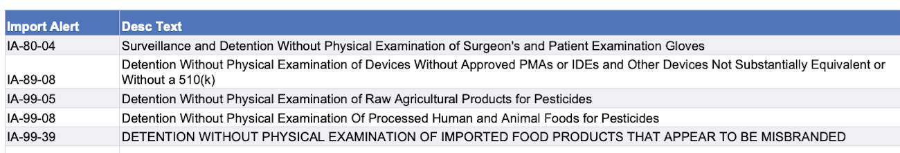 Recent modifications to FDA’s import alerts, as posted by the agency, are listed below.
