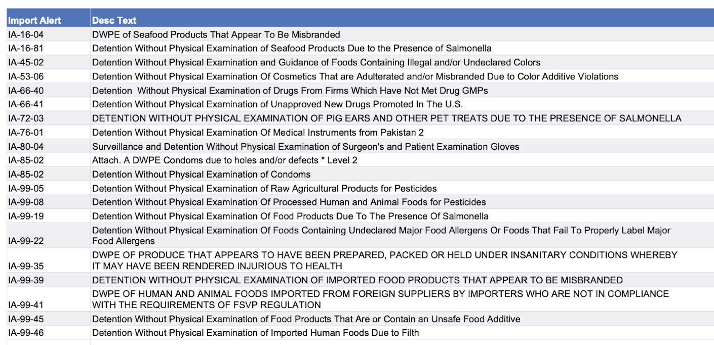Recent modifications to FDA’s import alerts, as posted by the agency, are listed below.