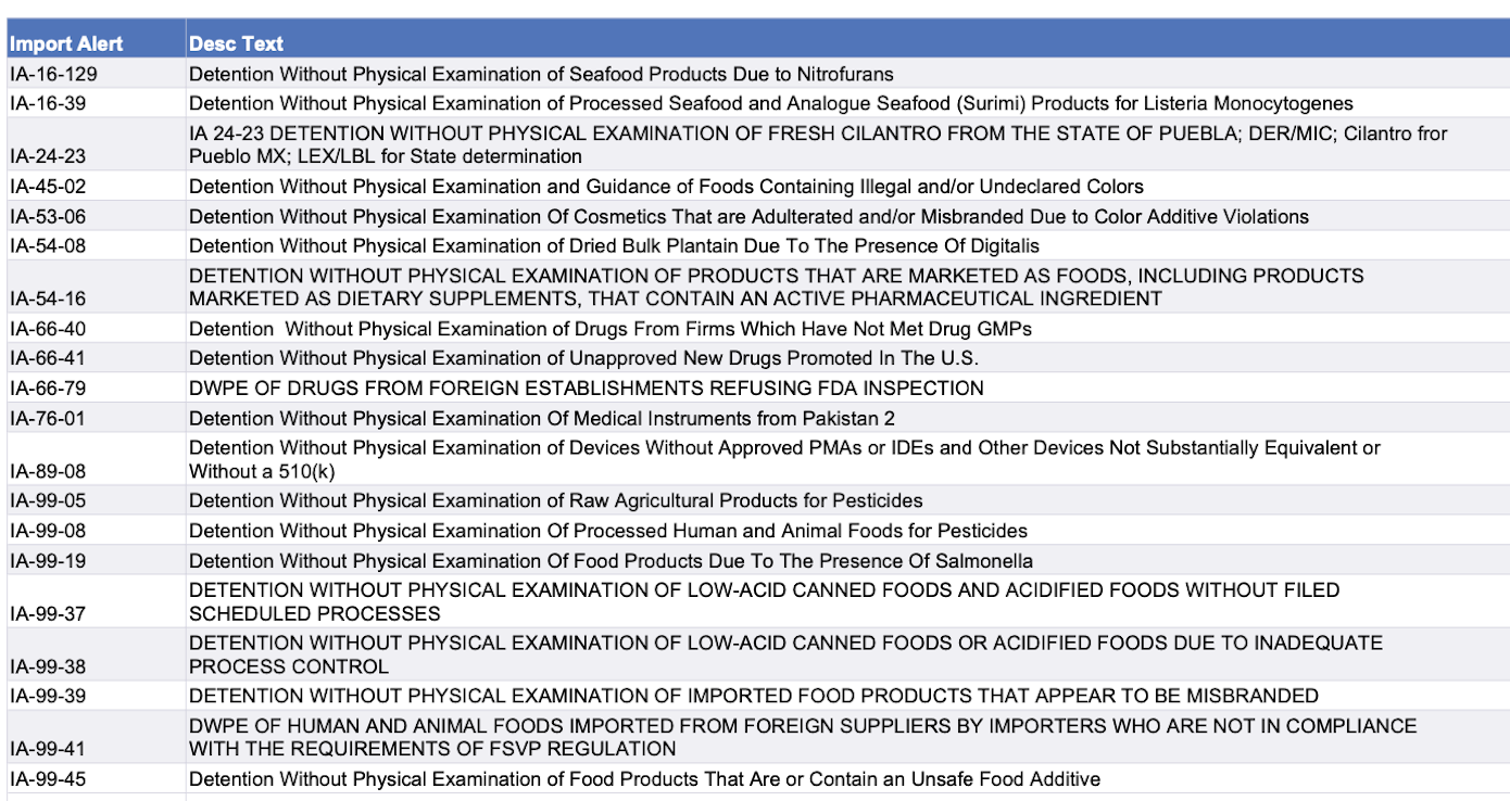 Recent modifications to FDA’s import alerts, as posted by the agency, are listed below.