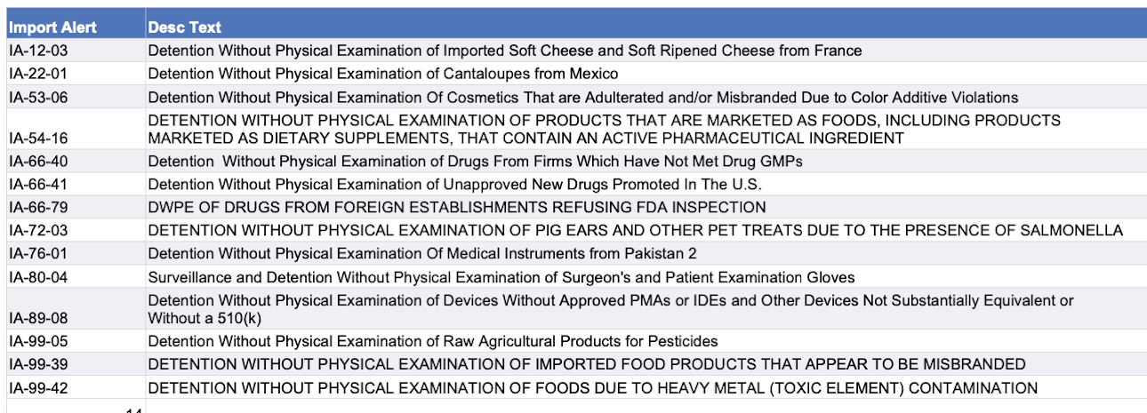Recent modifications to FDA’s import alerts, as posted by the agency, are listed below.