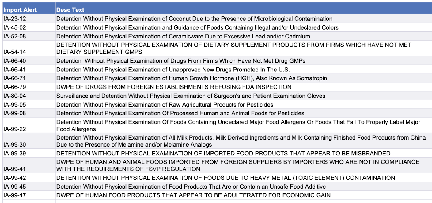 The Food and Drug Administration is continuing its use of import alerts to enforce U.S. food safety regulations for food from foreign countries. The agency updates and modifies the alerts as needed.