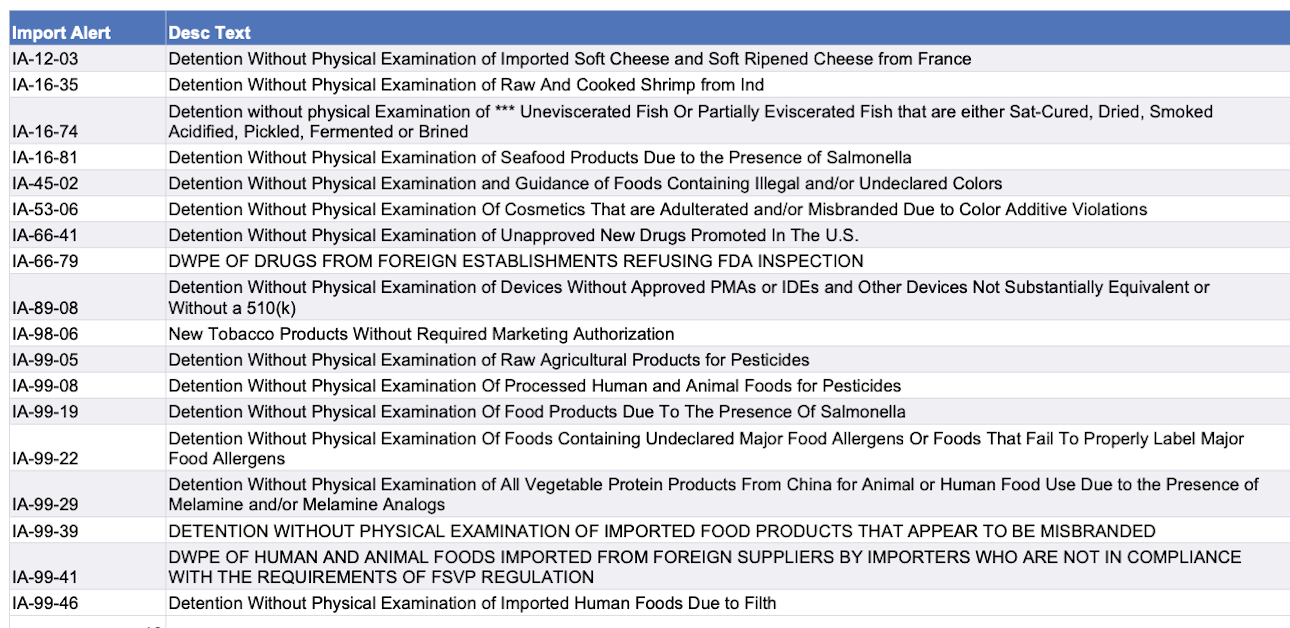 The Food and Drug Administration is continuing its use of import alerts to enforce U.S. food safety regulations for food from foreign countries. The agency updates and modifies the alerts as needed.
