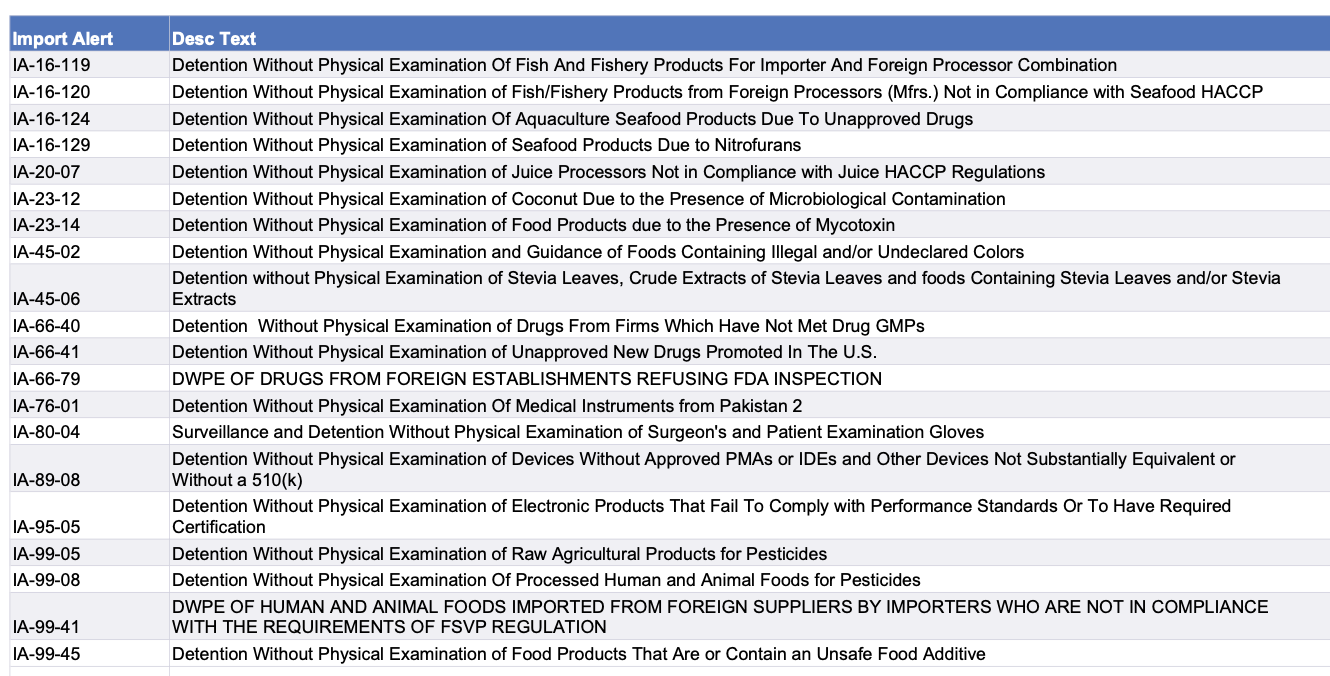 Recent modifications to FDA’s import alerts, as posted by the agency, are listed below.