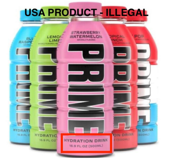The issue in the United Kingdom is imported Prime Hydration and Prime Energy drinks, which are not intended for the UK market.