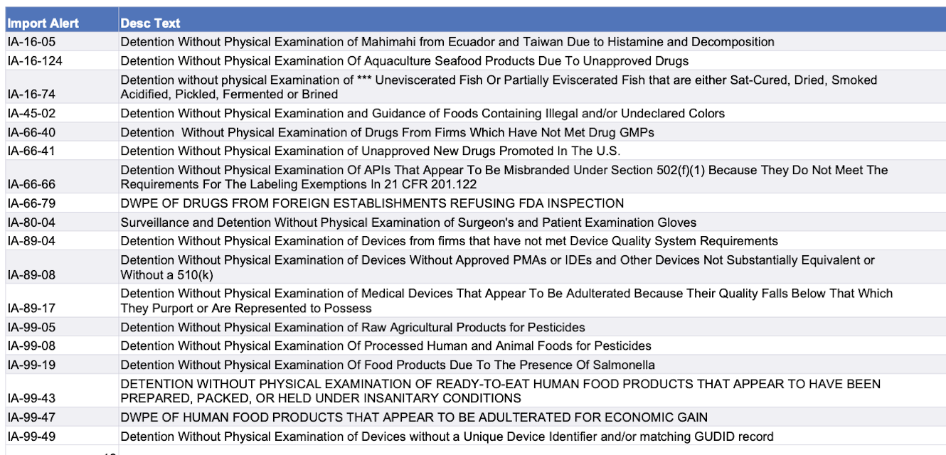 Recent modifications to FDA’s import alerts, as posted by the agency, are listed below.