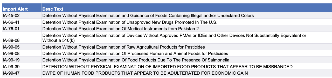 Recent modifications to FDA’s import alerts, as posted by the agency, are listed below.