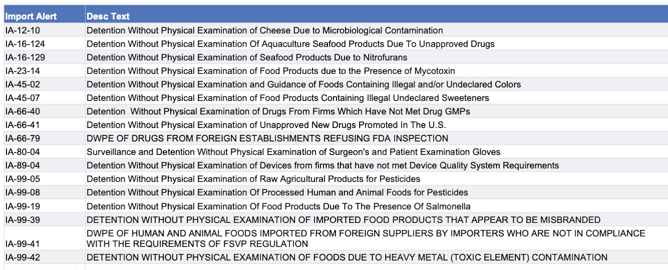 Recent modifications to FDA’s import alerts, as posted by the agency, are listed below.