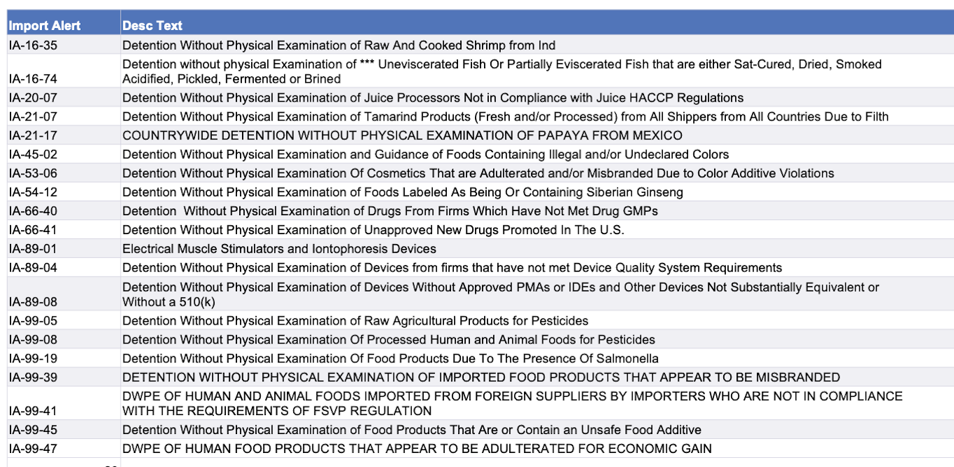 Recent modifications to FDA’s import alerts, as posted by the agency, are listed below.
