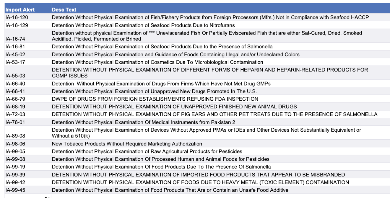 Recent modifications to FDA’s import alerts, as posted by the agency, are listed below.