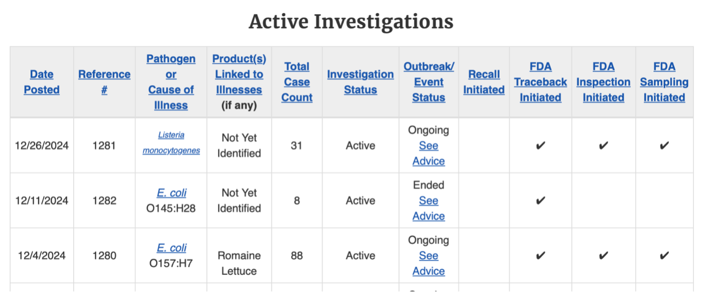 At the end of December 2024, the FDA released the information that romaine lettuce was the outbreak source linked to a specific strain of E. coli O157:H7.