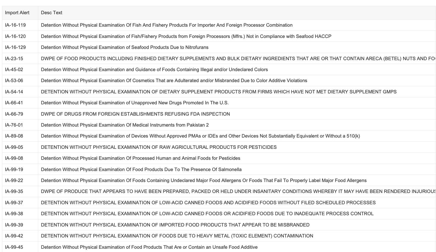 Recent modifications to FDA’s import alerts, as posted by the agency, are listed below.