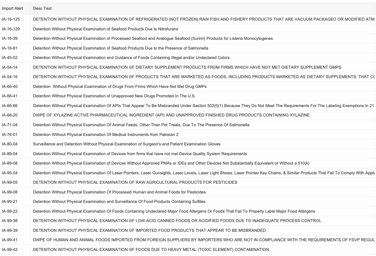 Recent modifications to FDA’s import alerts, as posted by the agency, are listed below.
