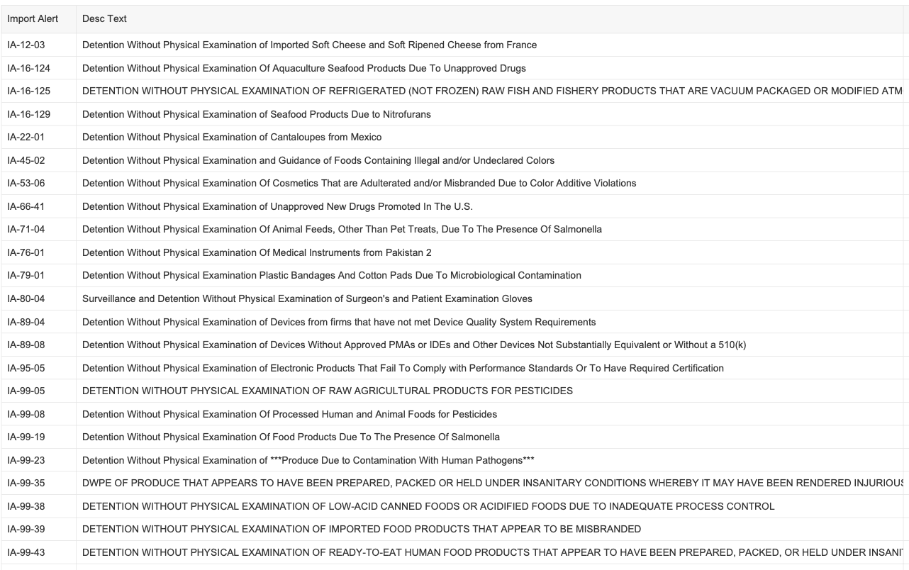Recent modifications to FDA’s import alerts, as posted by the agency, are listed below.
