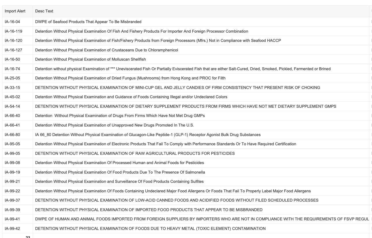 Recent modifications to FDA’s import alerts, as posted by the agency, are listed below.