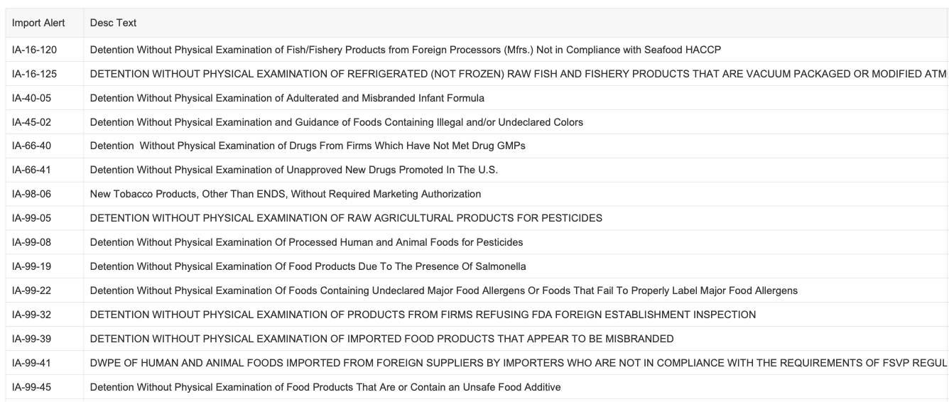 Recent modifications to FDA’s import alerts, as posted by the agency, are listed below.