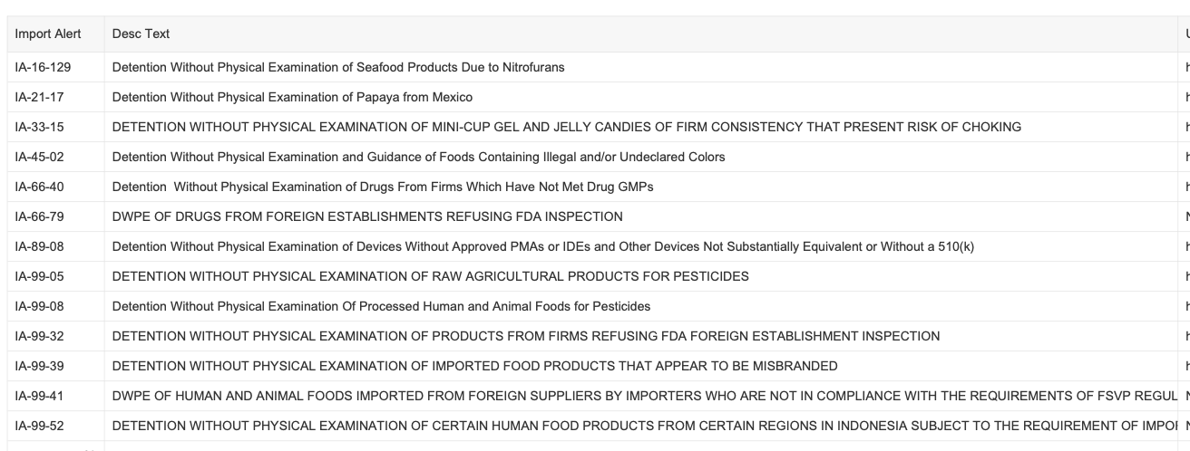Recent modifications to FDA’s import alerts, as posted by the agency, are listed below.