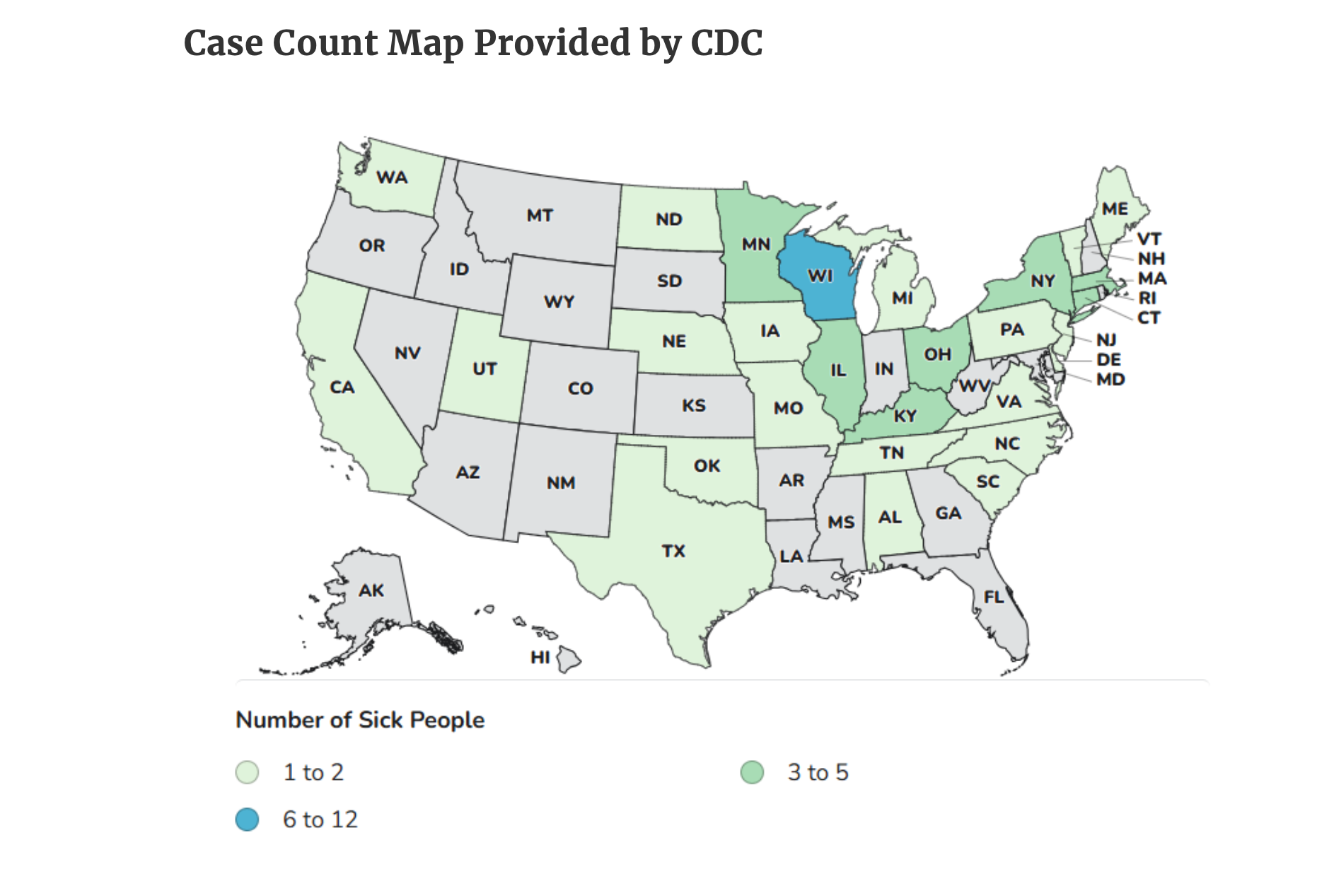 The true number of sick people in this outbreak is likely much higher than the number reported, and this outbreak may not be limited to the states with known illnesses. This is because many people recover without medical care and others are not specifically tested for Salmonella. In addition, recent illnesses may not yet be reported as it usually takes three to four weeks to determine if a sick person is part of an outbreak. The CDC estimates that for every confirmed patient in a Salmonella outbreak there are 29 who go undetected.