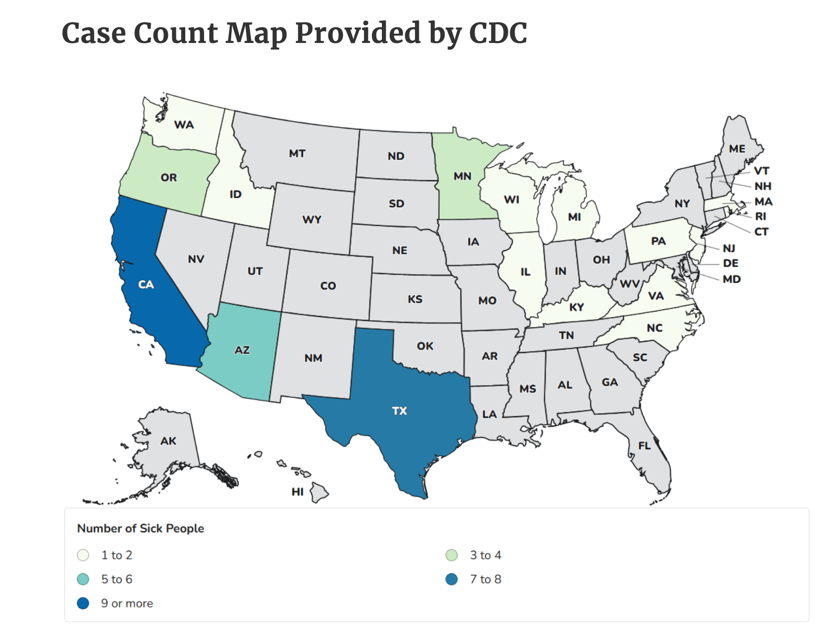 Initially it was thought that there were 51 patients, but further review showed that three of the babies were sick from another source, bringing the total of outbreak cases to 48 spread across 17 states from coast to coast. All 48 infants were hospitalized but none died.