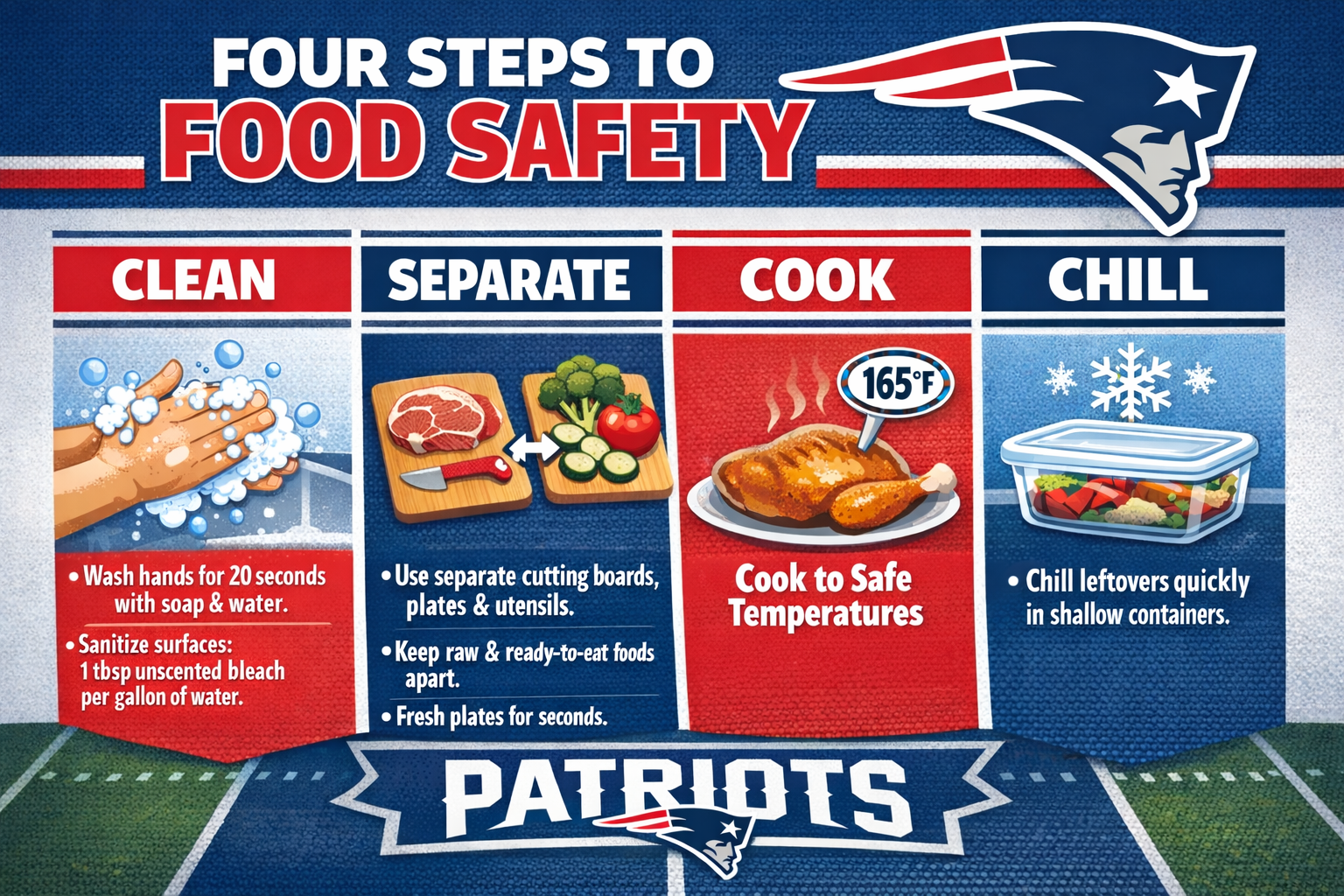 Whether you're cheering Maye's deep ball or Seattle's "Dark Side" defense, prioritizing food safety ensures your party ends in victory — not a timeout on the couch. For questions, call the USDA Meat and Poultry Hotline at 1-888-MPHotline.